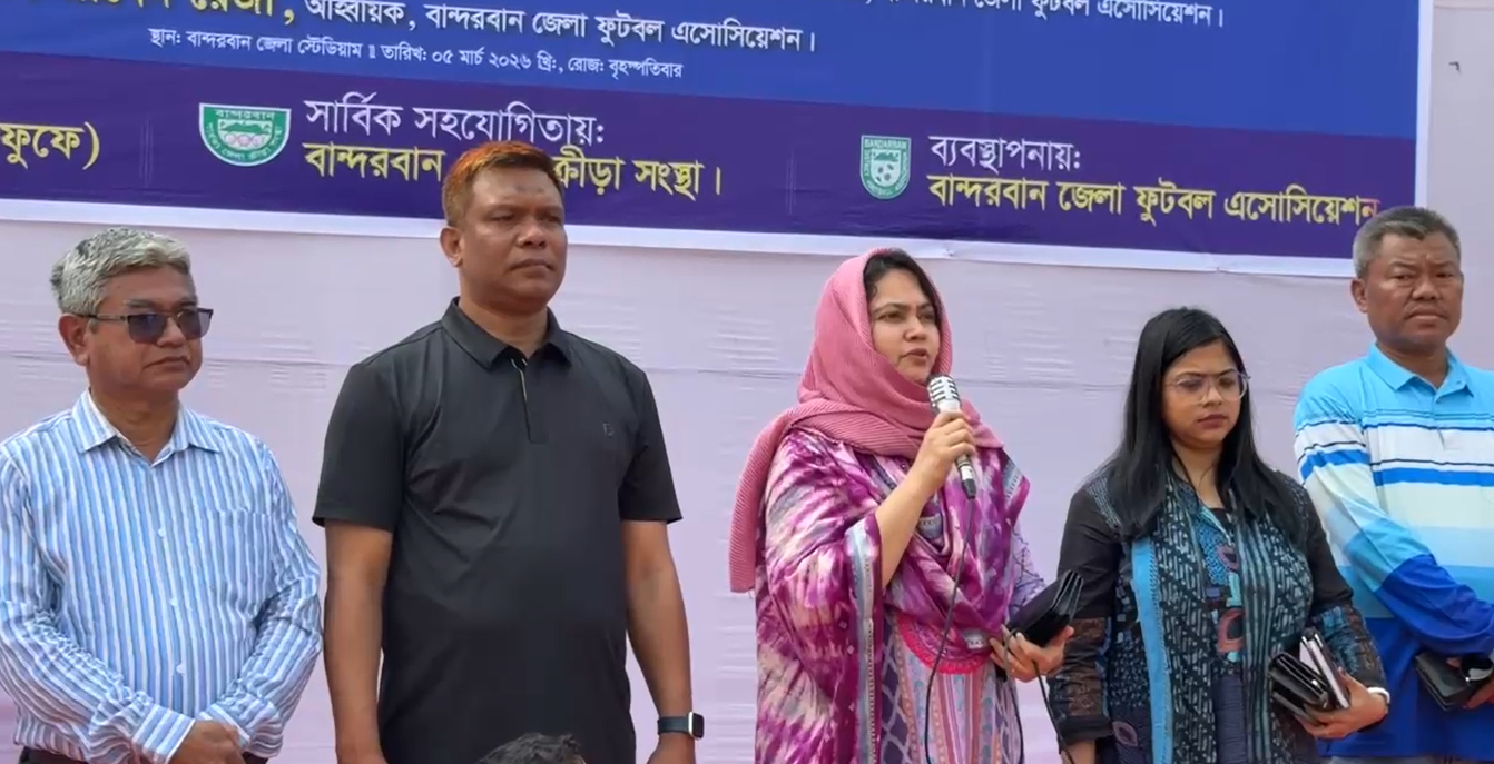 বান্দরবান জেলা স্টেডিয়ামে বাংলাদেশ অনূর্ধ্ব–১৭ জাতীয় ফুটবল টুর্নামেন্টের আনুষ্ঠানিক উদ্বোধন করা হয়েছে। বৃহস্পতিবার (৫ মার্চ) দুপুর ২টা ৩০ মিনিটে বর্ণাঢ্য আয়োজনের মধ্য দিয়ে টুর্নামেন্টটির উদ্বোধন করা হয়।